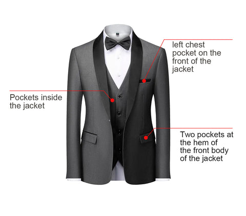 Suit: A complete suit with a solid color and a darker color is suitable for many occasions and is the most useful. Men with dark complexions can choose from light and neutral colors. Tops with open pockets are only suitable for casual occasions, while tops with hidden pockets are suitable for formal occasions.