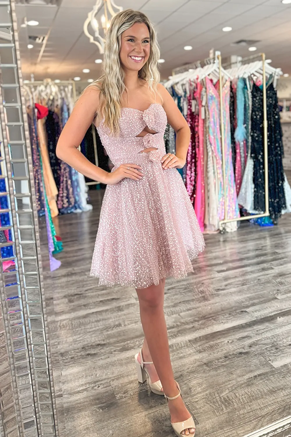 Pink Strapless Cut Out Homecoming Dress with 3D Flower