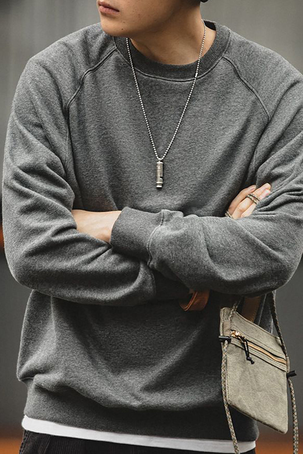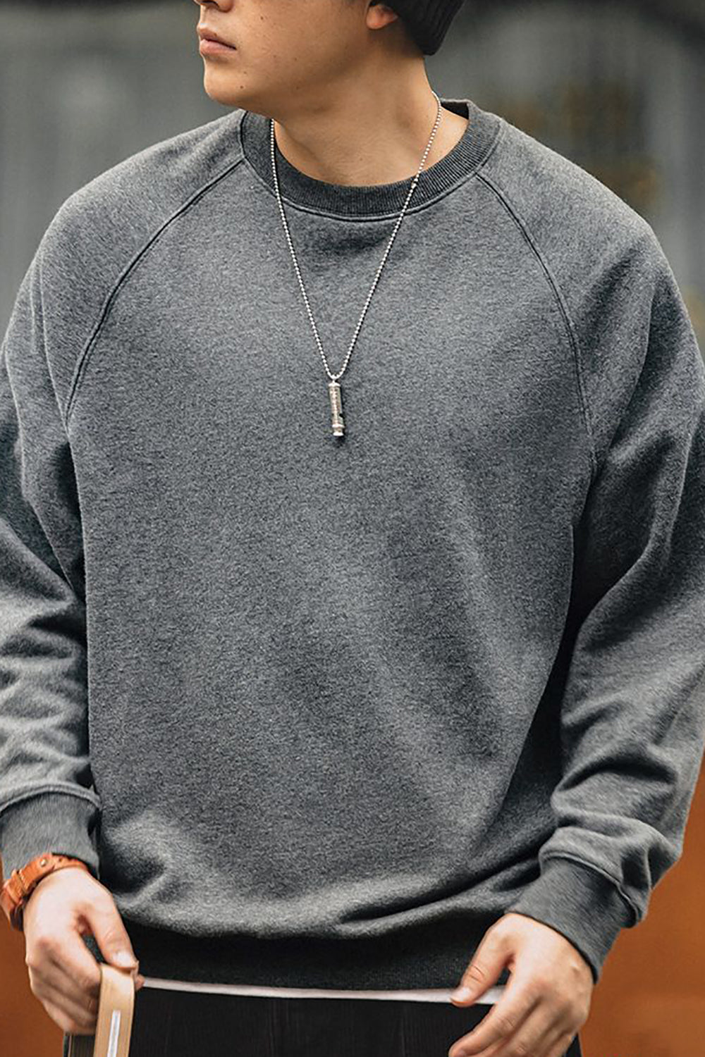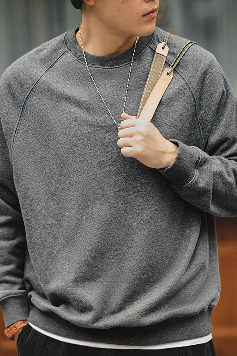 Men's Grey Raglan Sleeves Loose Fit Pullover Sweatshirt