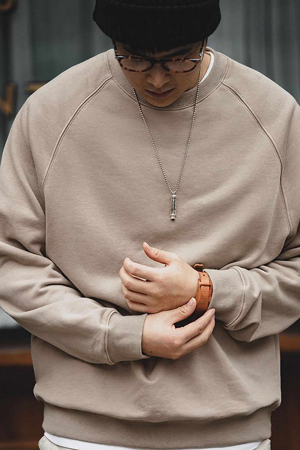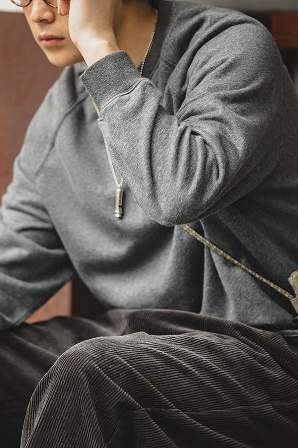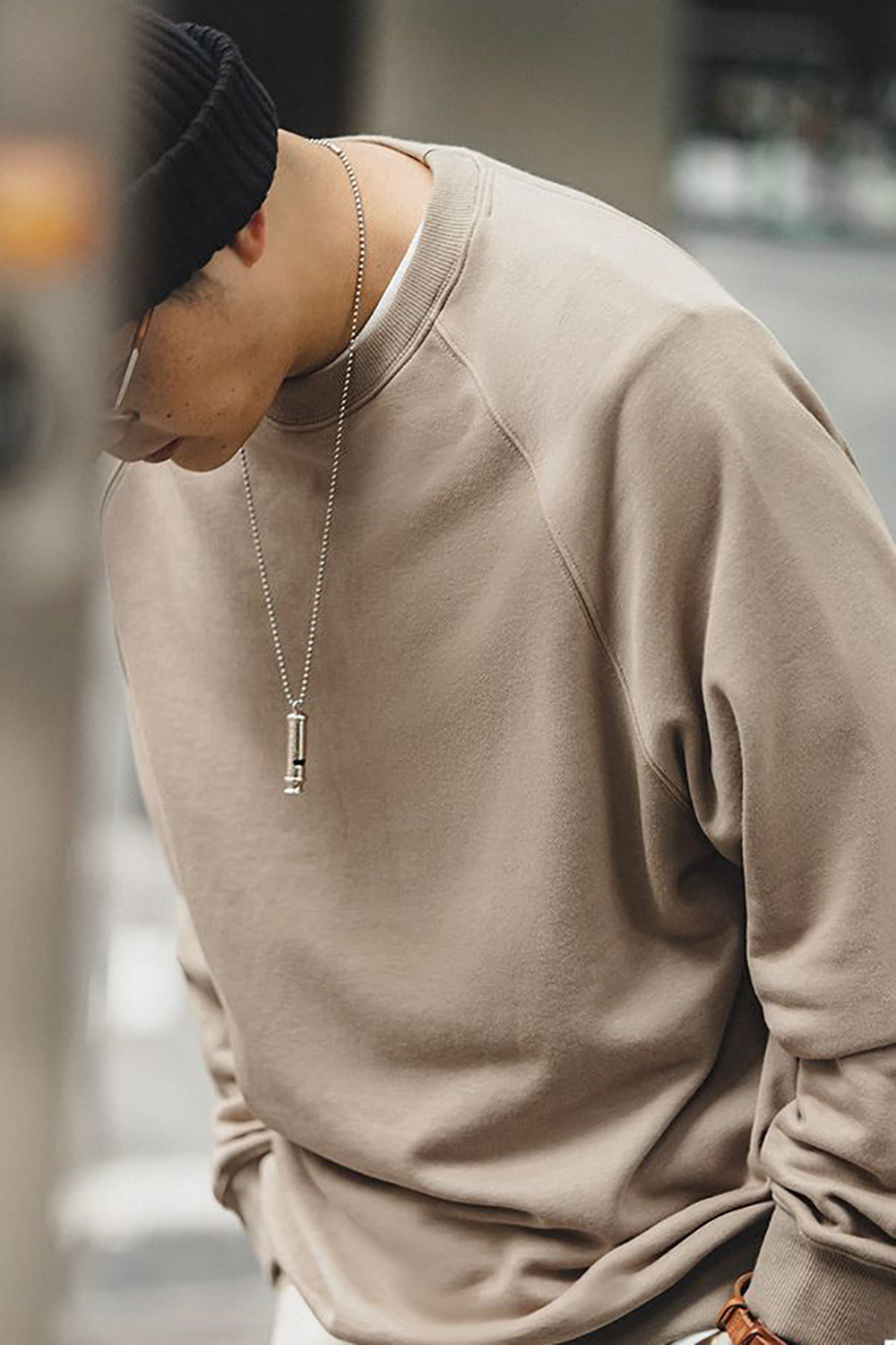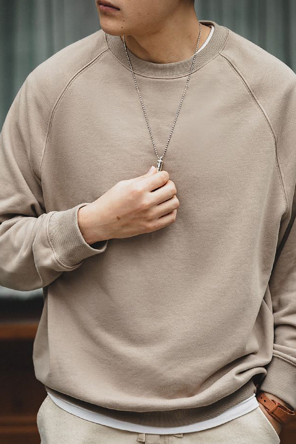 Men's Grey Raglan Sleeves Loose Fit Pullover Sweatshirt