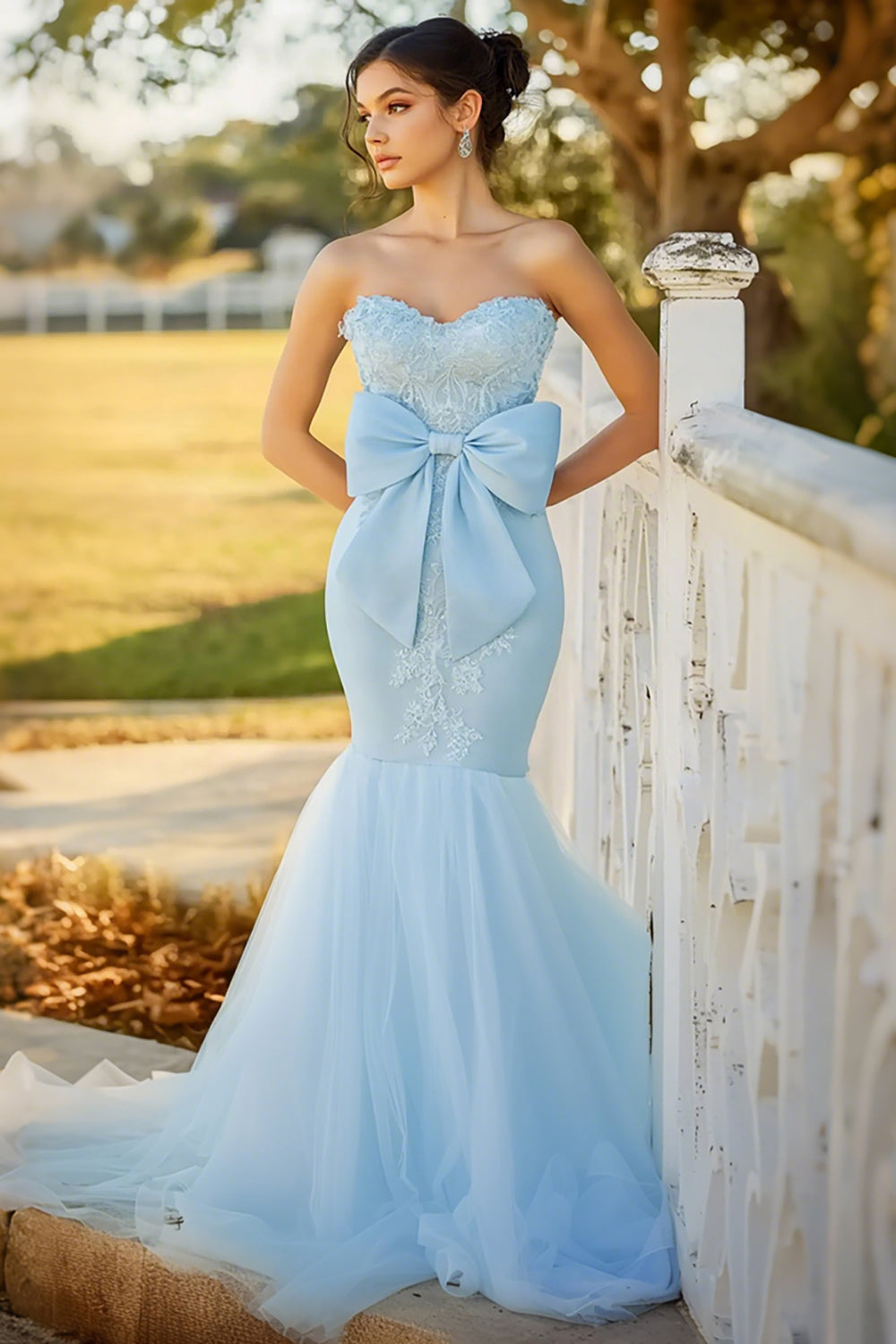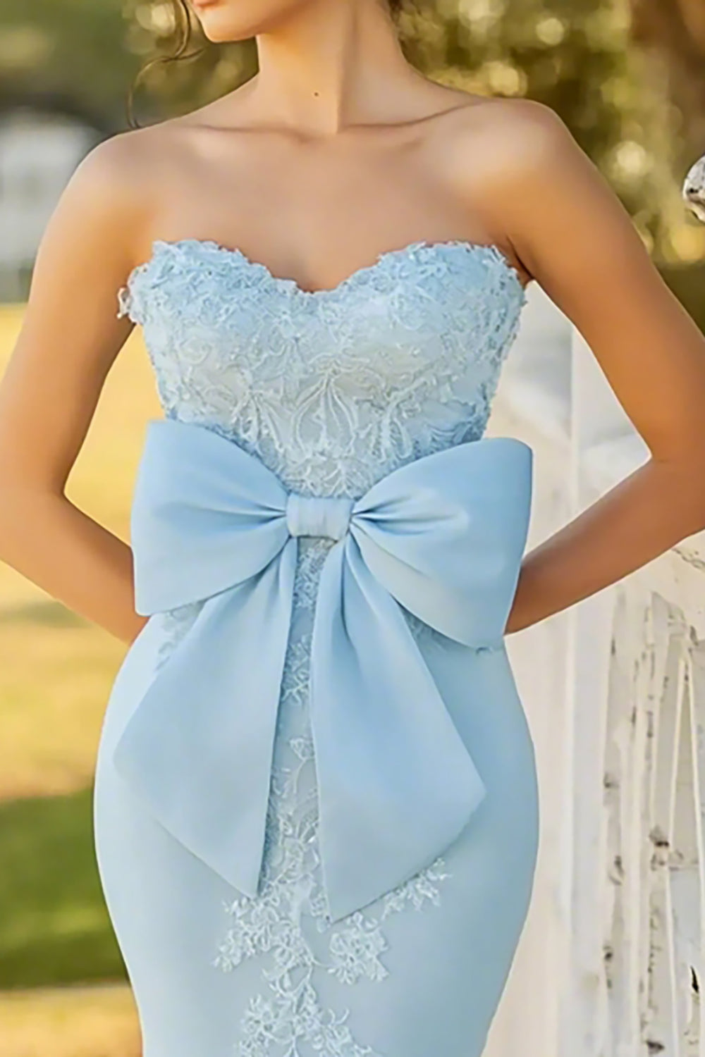 Mermaid Strapless Blue Prom Dress With Bow