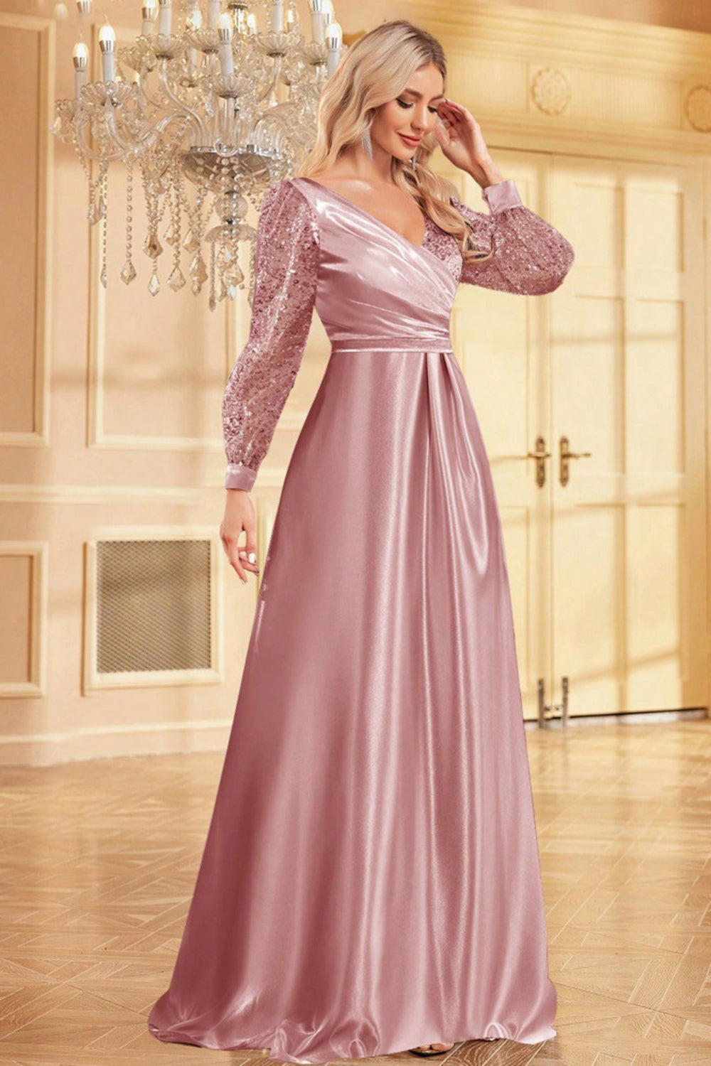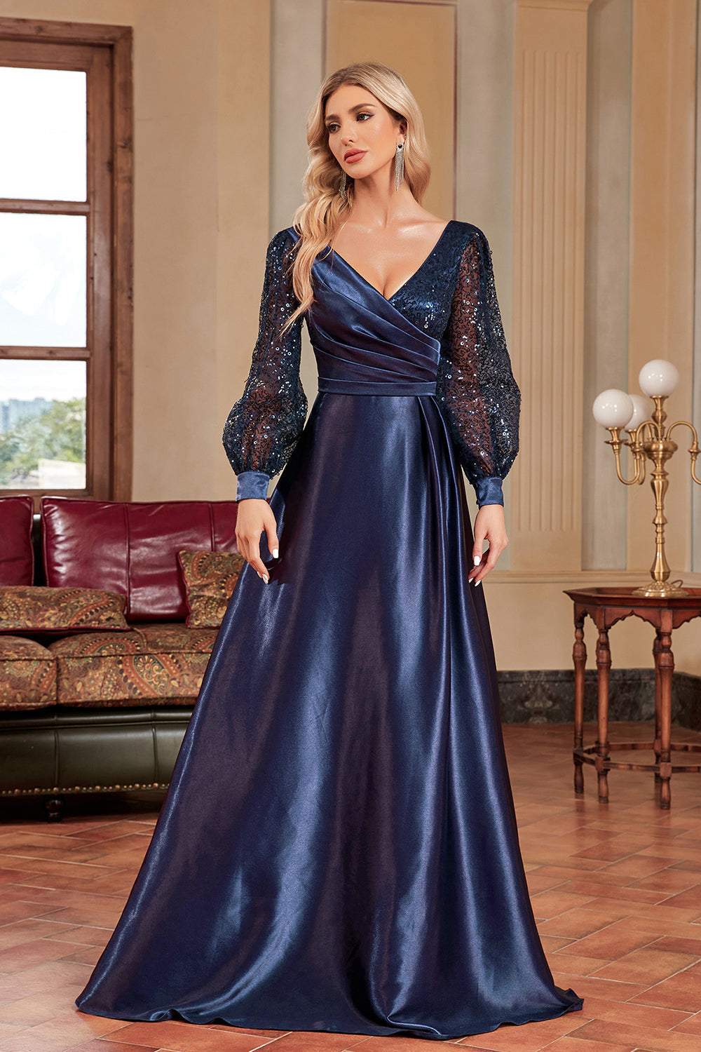 Navy Sequin Long Sleeves A Line Mother Of The Bride Dress