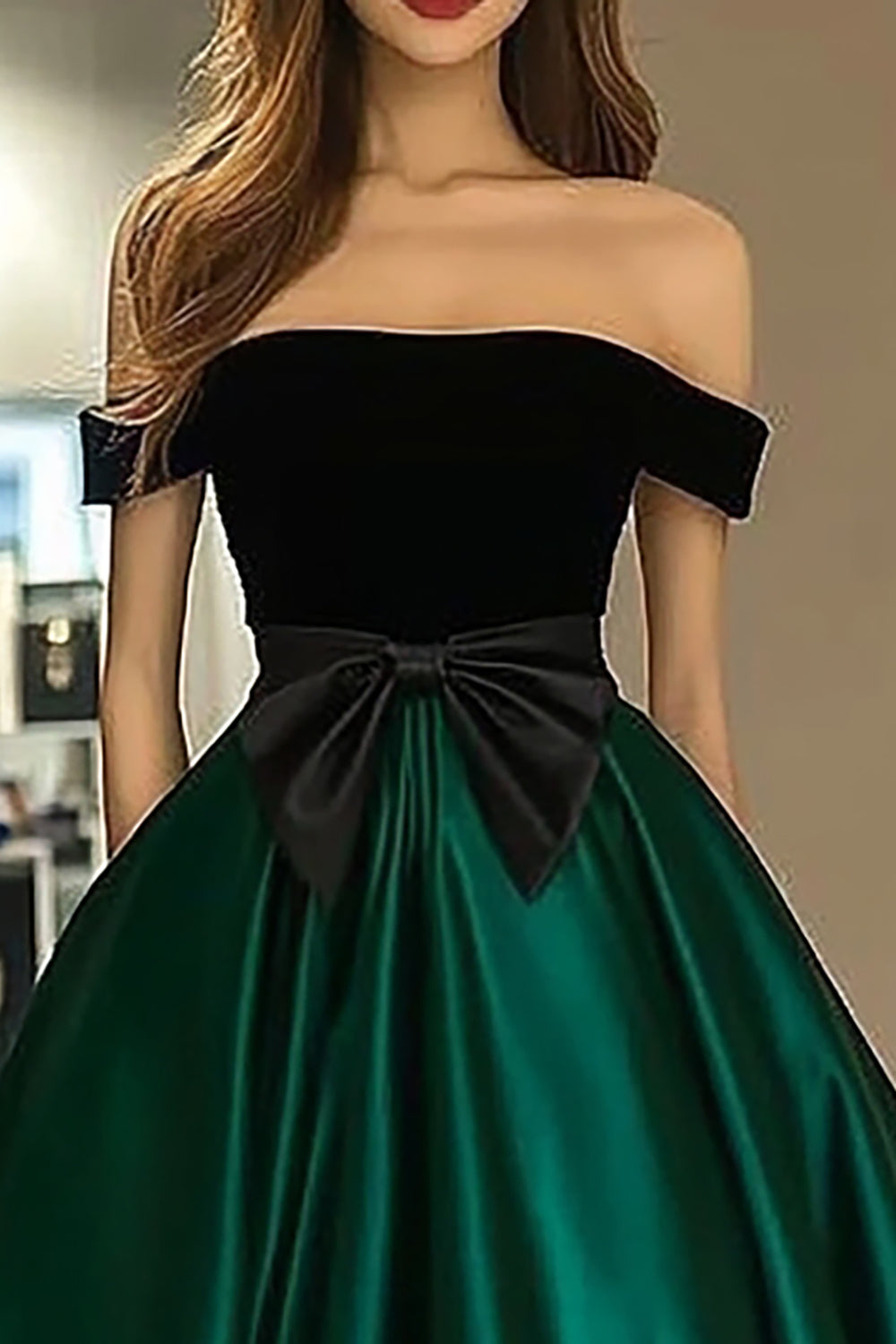 Off The Shoulder A Line Green Prom Dress With Bow