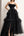 Black A Line Spaghetti Straps Ruffles Tulle Long Prom Dress