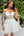 White Spaghetti Straps Rhinestones Bodycon Cocktail Dress With Slit