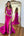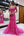 Glitter Hot Pink V-Neck Mermaid Long Beaded Prom Party Dress