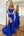 Sparkly Royal Blue Halter Sheath Long Prom Dress with Slit