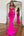 Hot Pink Strapless A Line Pleated Metallic Prom Dress With Slit