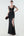 Black V Neck Floral A Line Long Formal Dress with Sleeve