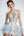 Tiered Cold Shoulder Corset White Blue Flower Homecoming Dress