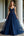 V-Neck Cross Back A Line Long Navy Formal Dress With Slit