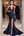 Navy Mermaid Ruched V Neck Gala Dress with Slit