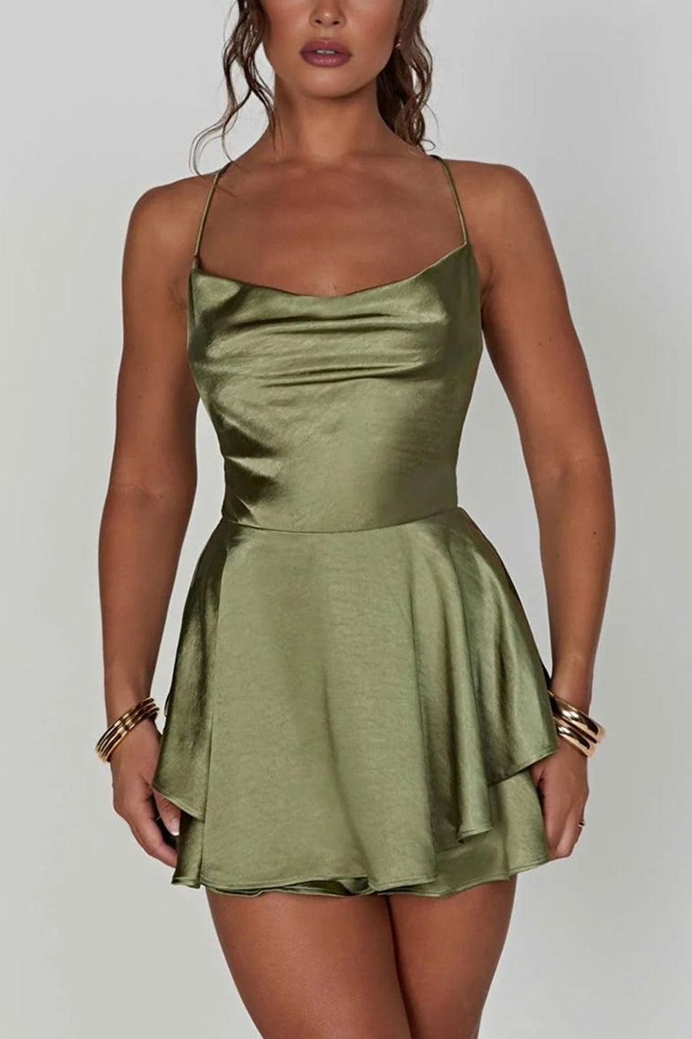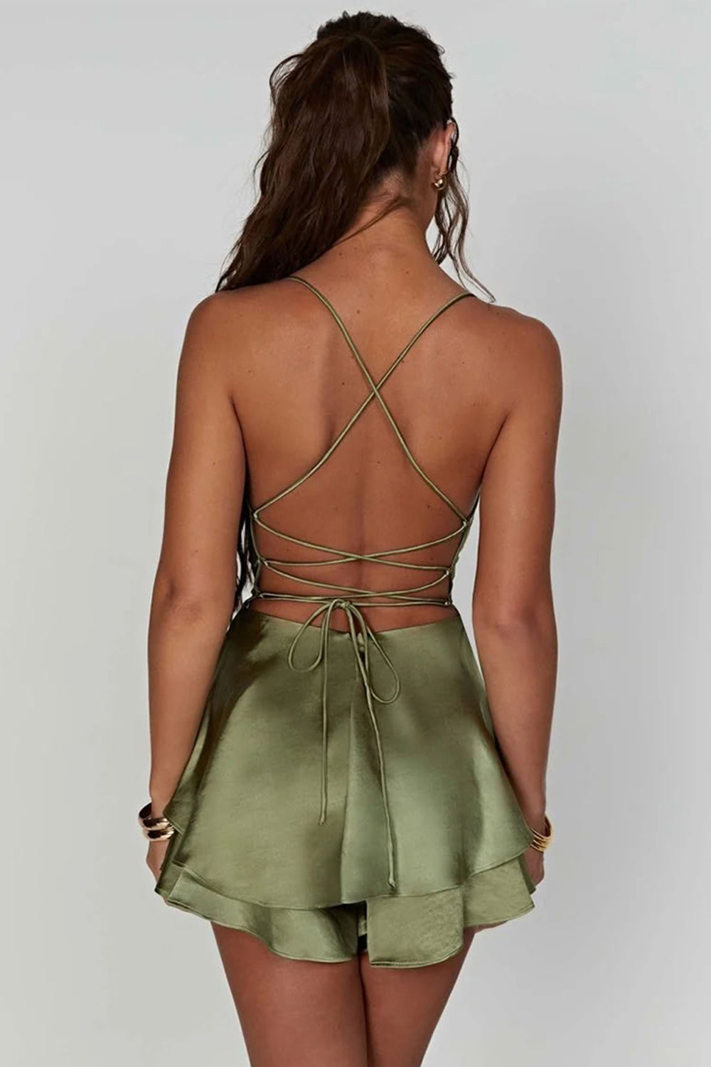 Sage Green A-Line Ruffled Homecoming Dress with Lace Up Back