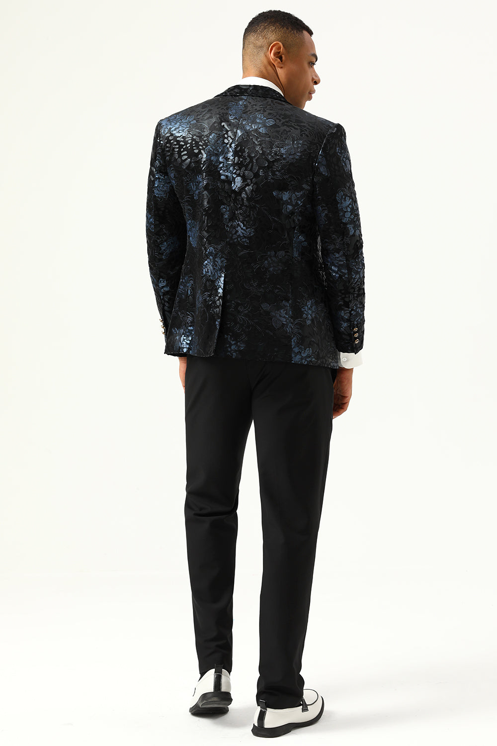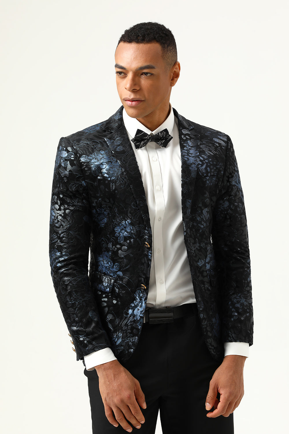 Make a lasting impression at your next sophisticated gathering with the tonal floral print and striking hue of this suit jacket from Lvnes.