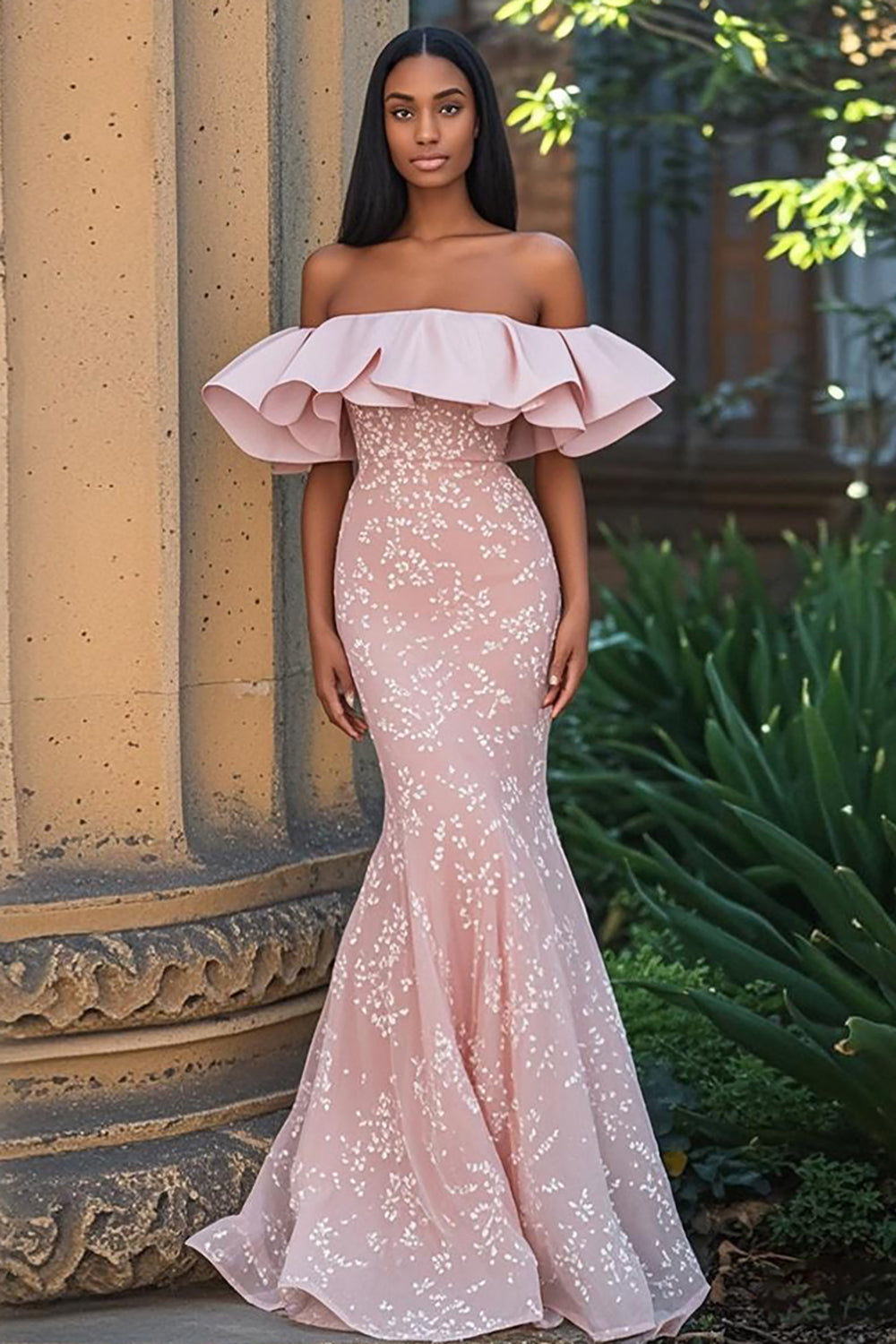 Lace Blush Appliques Off the Shoulder Mermaid Prom Dress