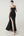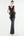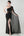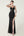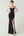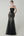 Black V Neck Floral A Line Long Formal Dress with Sleeve