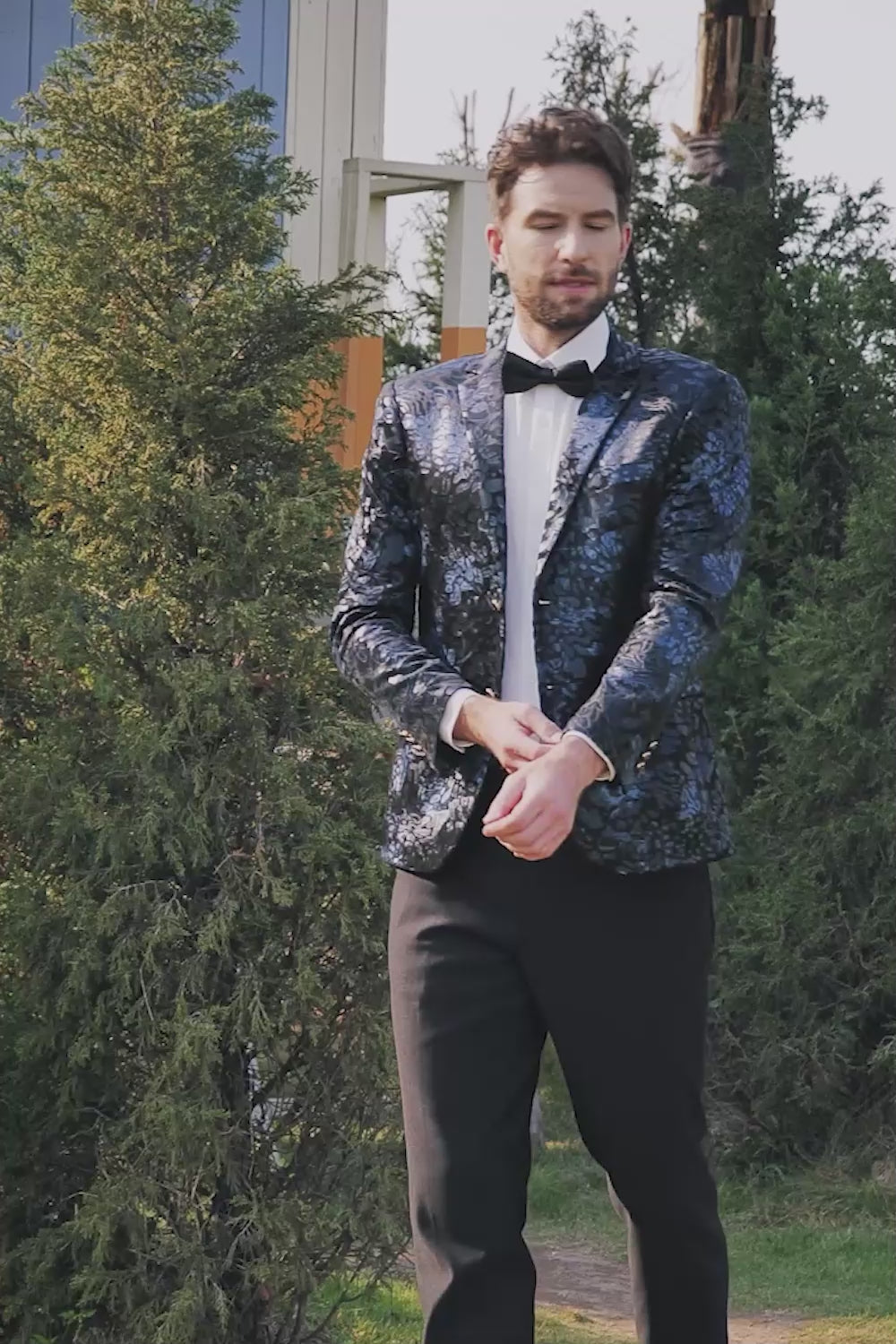 Make a lasting impression at your next sophisticated gathering with the tonal floral print and striking hue of this suit jacket from Lvnes.