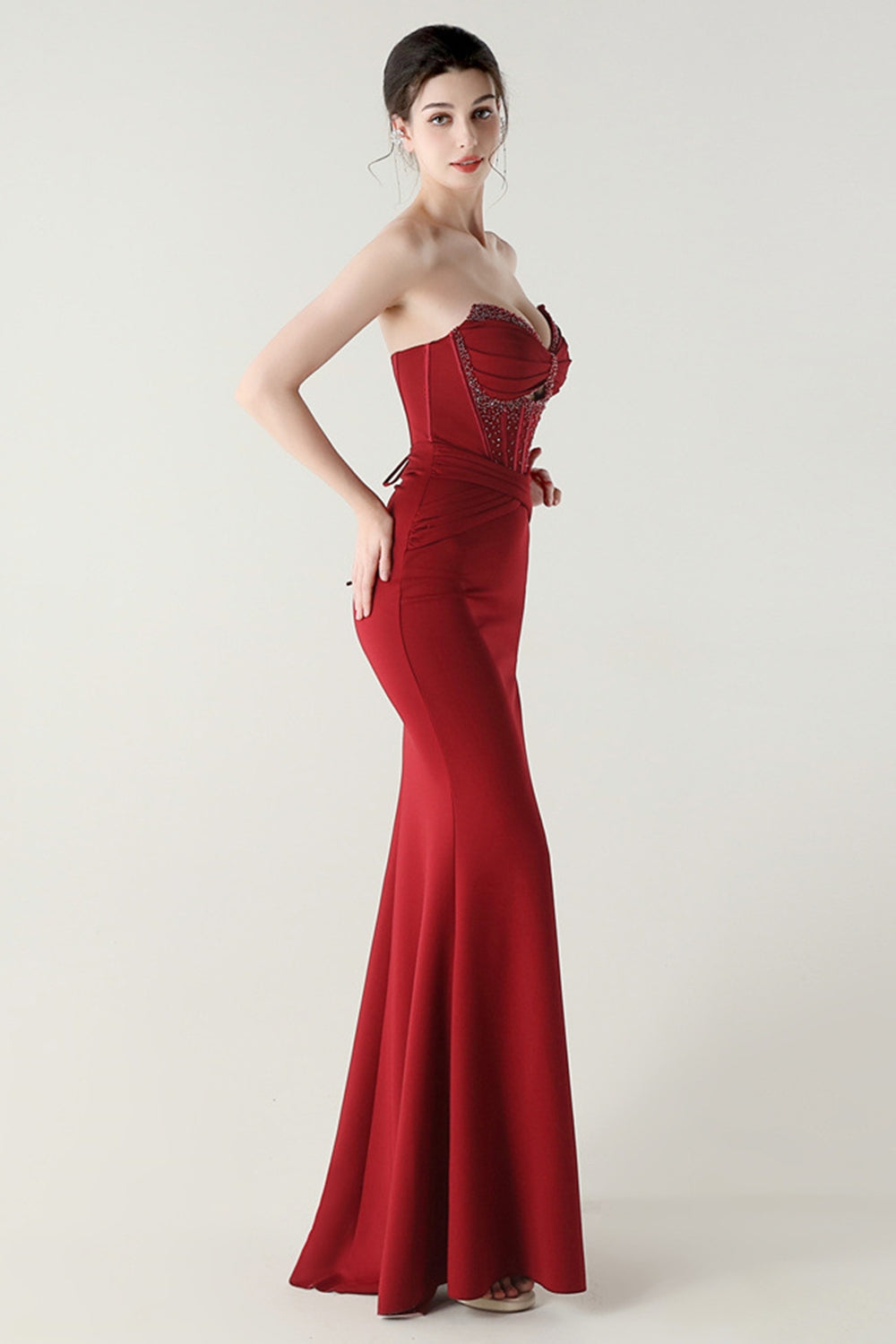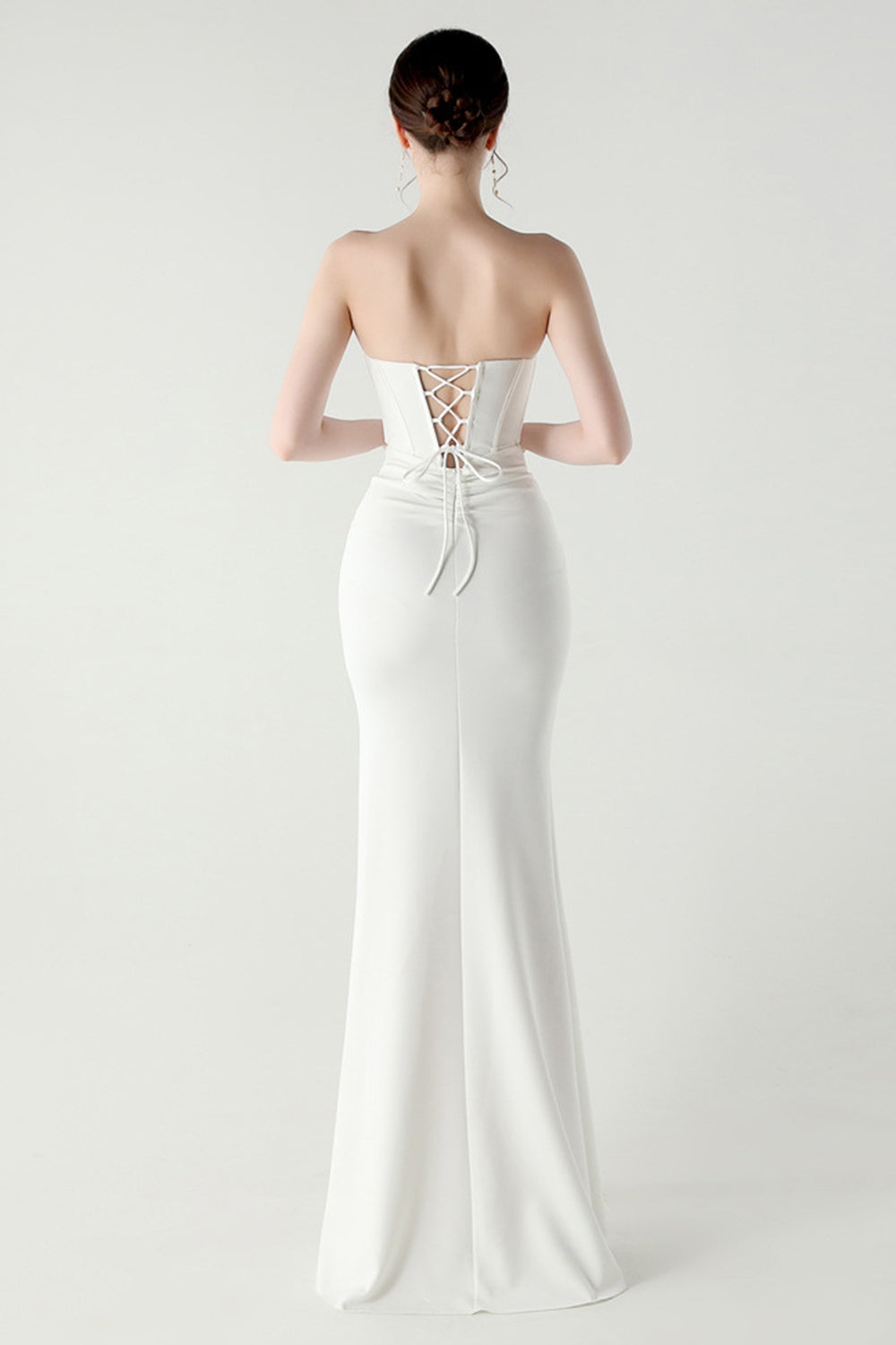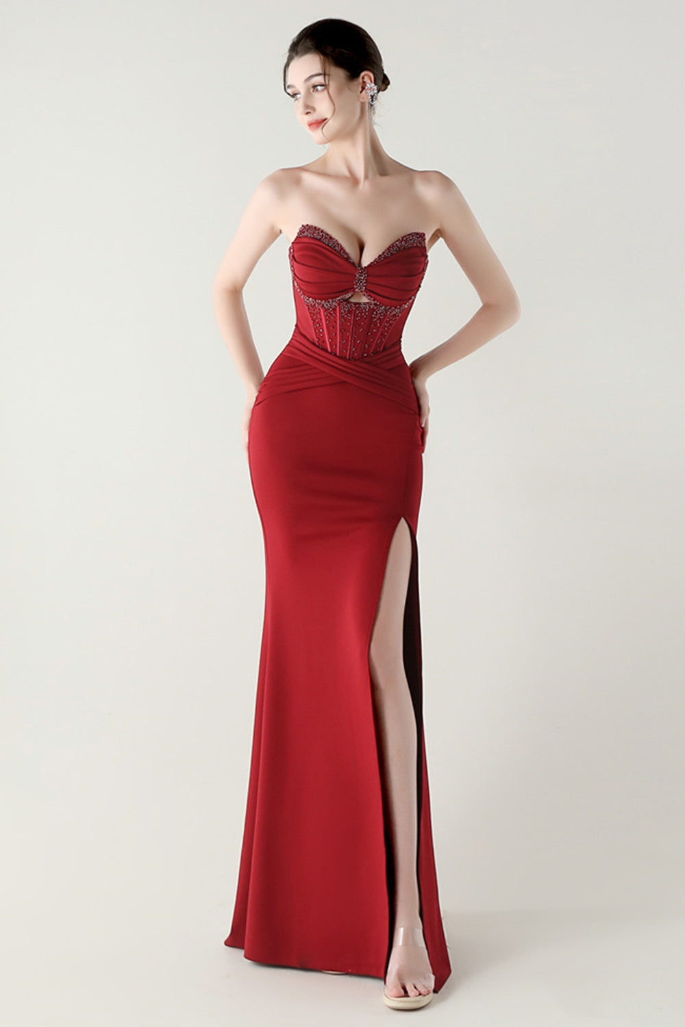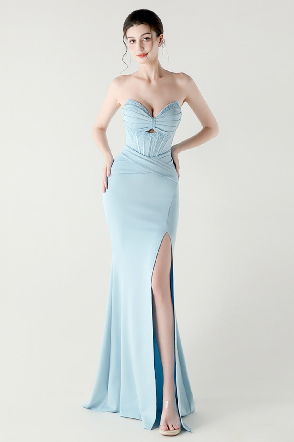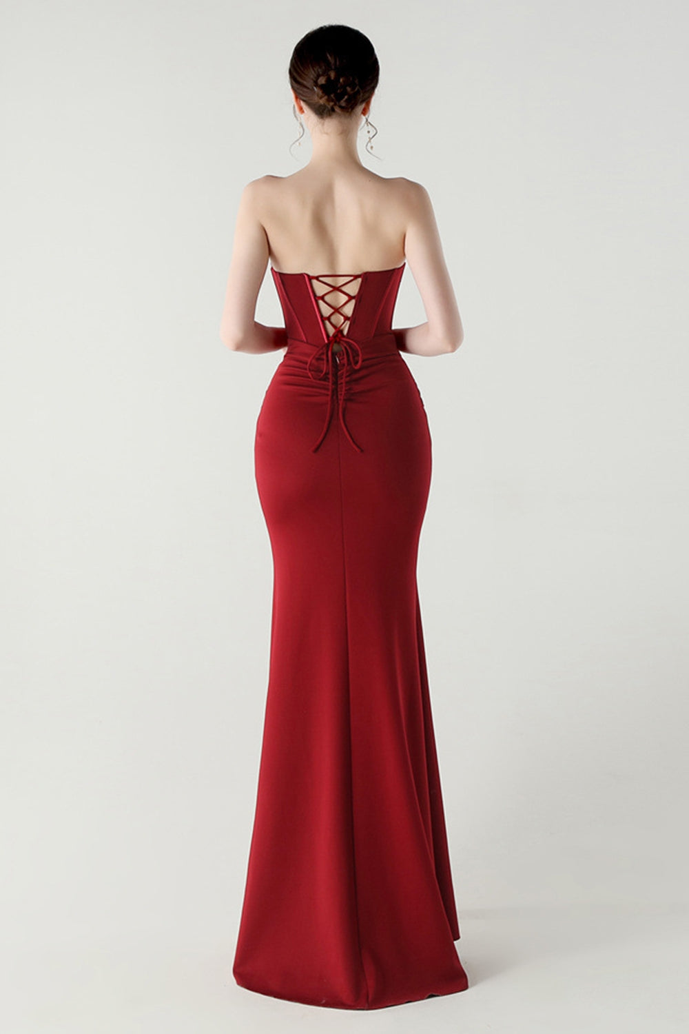 Black Strapless Sheath Corset Long Prom Dress with Slit