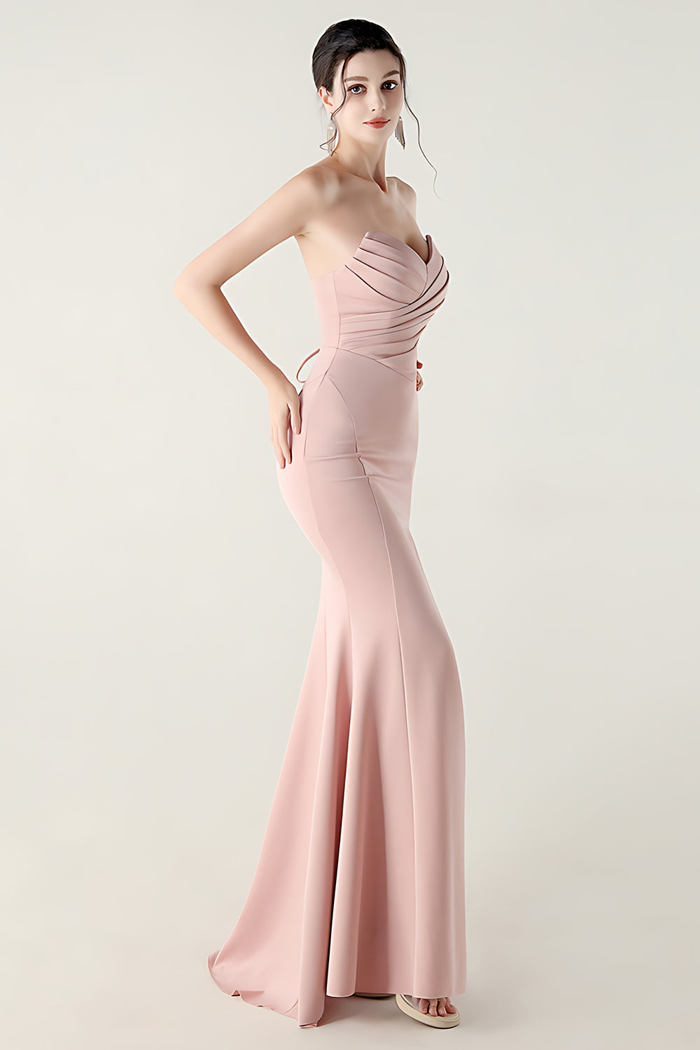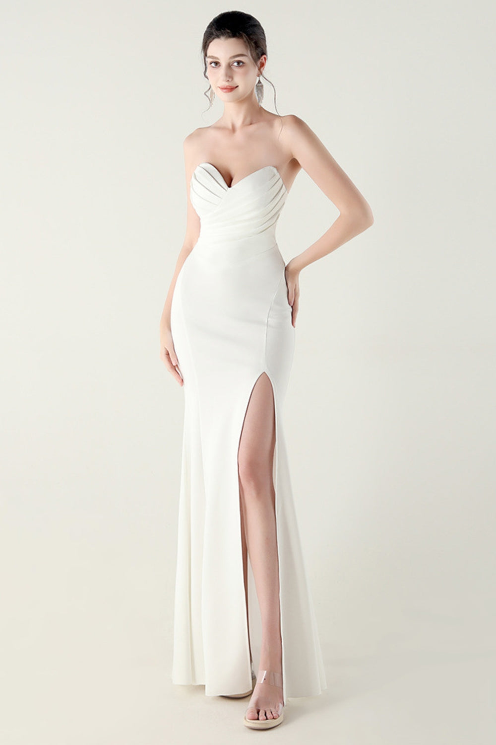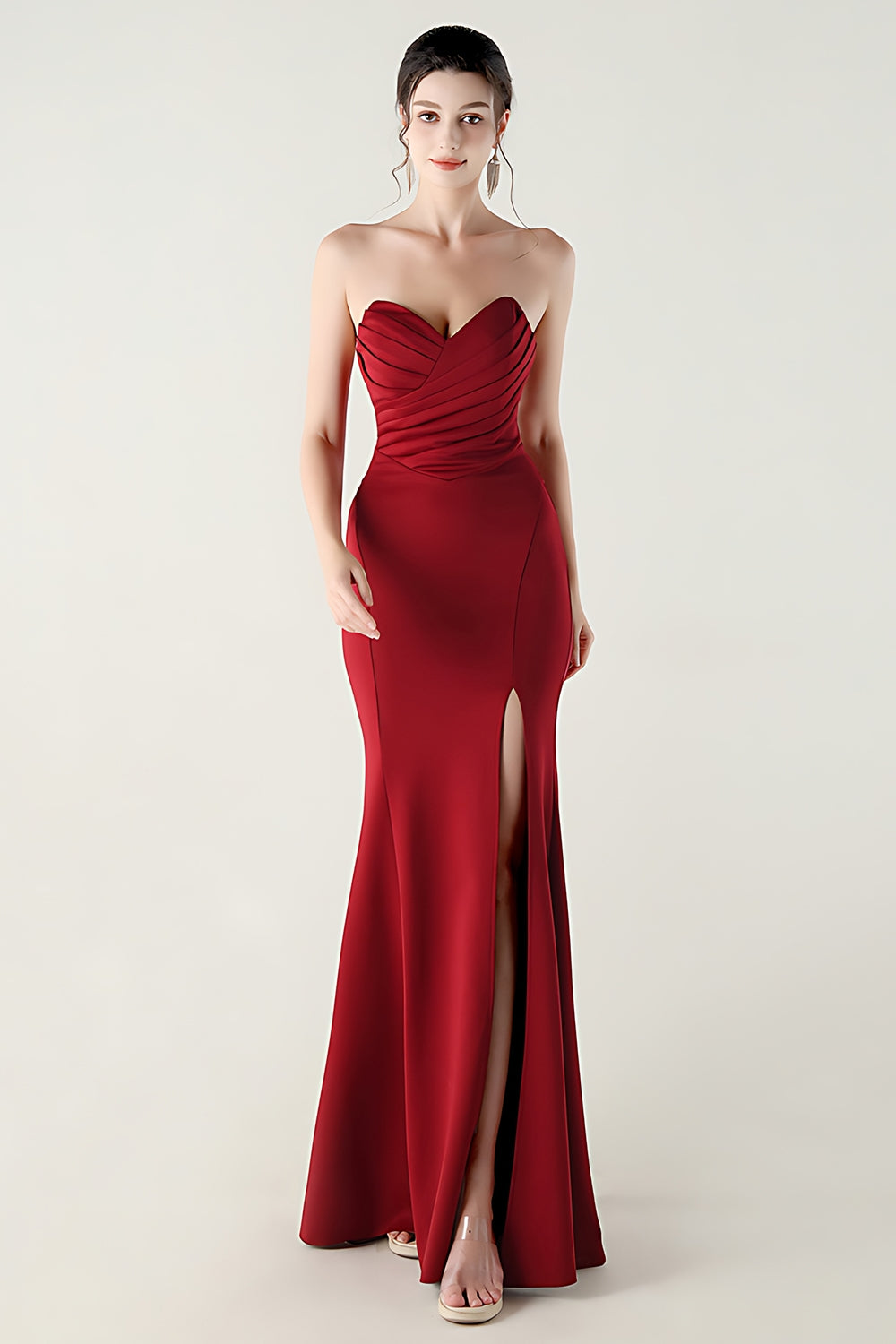 Blue Strapless Pleated Sheath Prom Dress with Slit