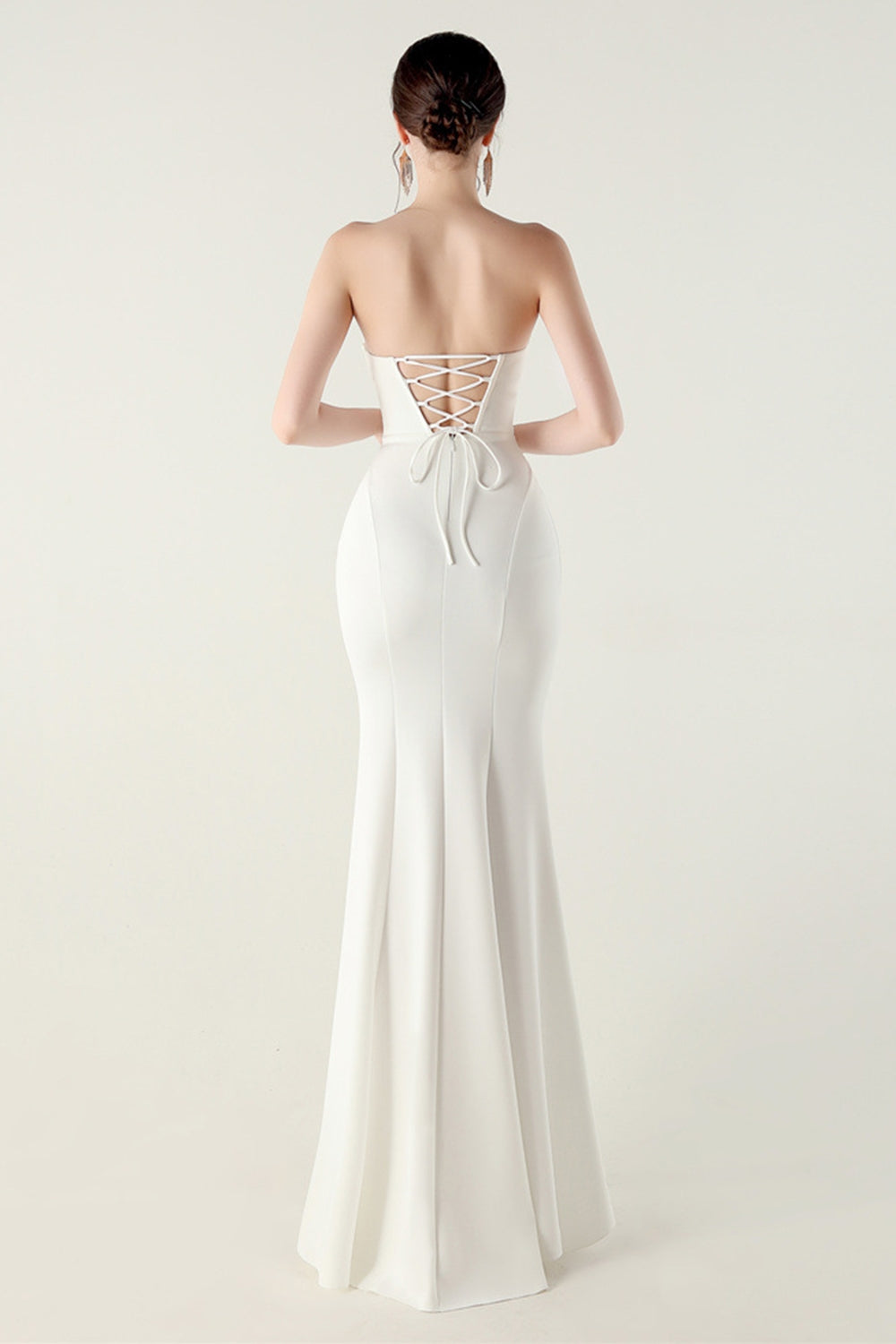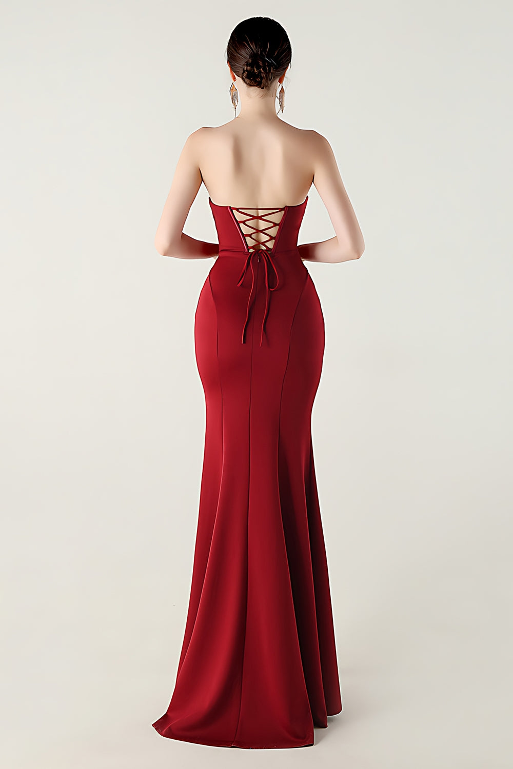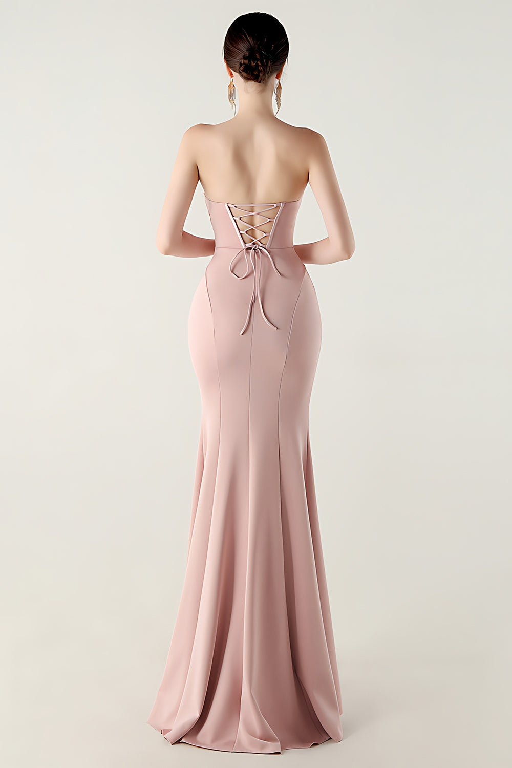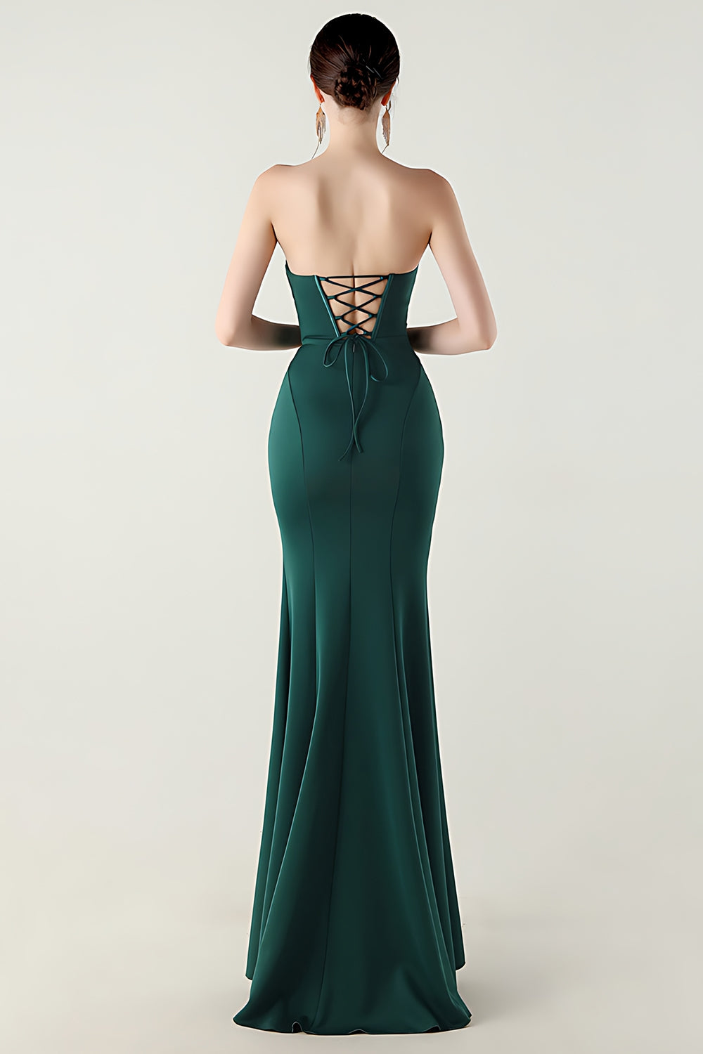 Blue Strapless Pleated Sheath Prom Dress with Slit