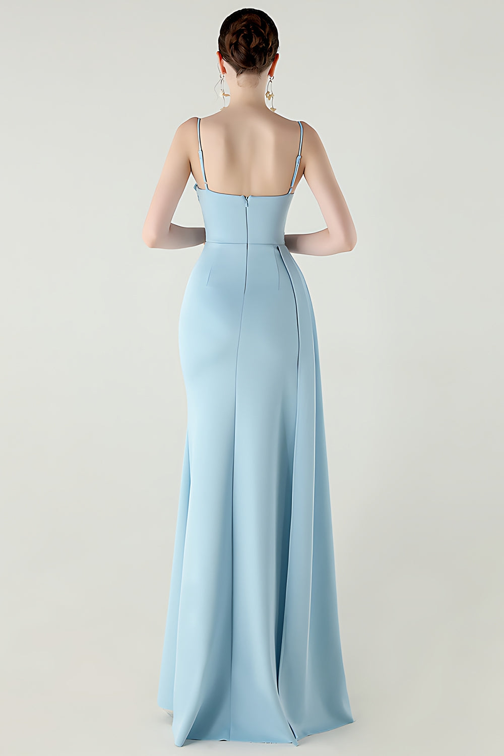 Spaghetti Straps Burgundy Long Sheath Prom Dress with Slit