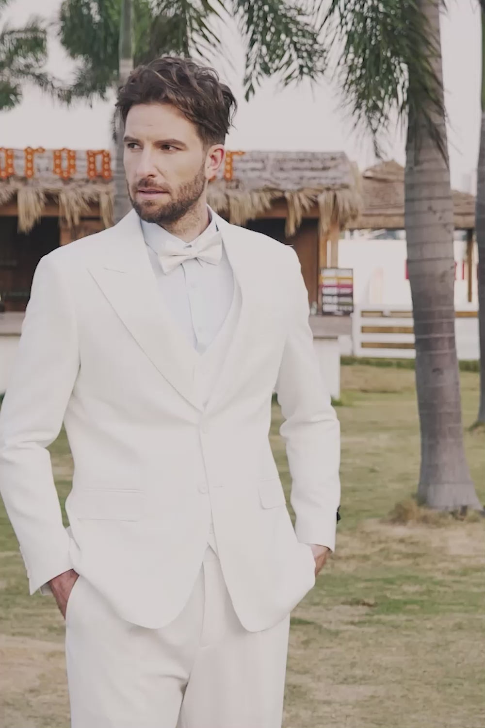 The men suit will make a statement! Our crisp white color will pop in photos and was designed with the trendy bridal party in mind. Perfect for a wedding, a night out, and all day at the office. Crafted from wrinkle-resistant poly-viscose blend fabric, our suit is a subtle fashion-forward take on a traditional tailoring making you a complete gentleman that grabs attention for his styling.
