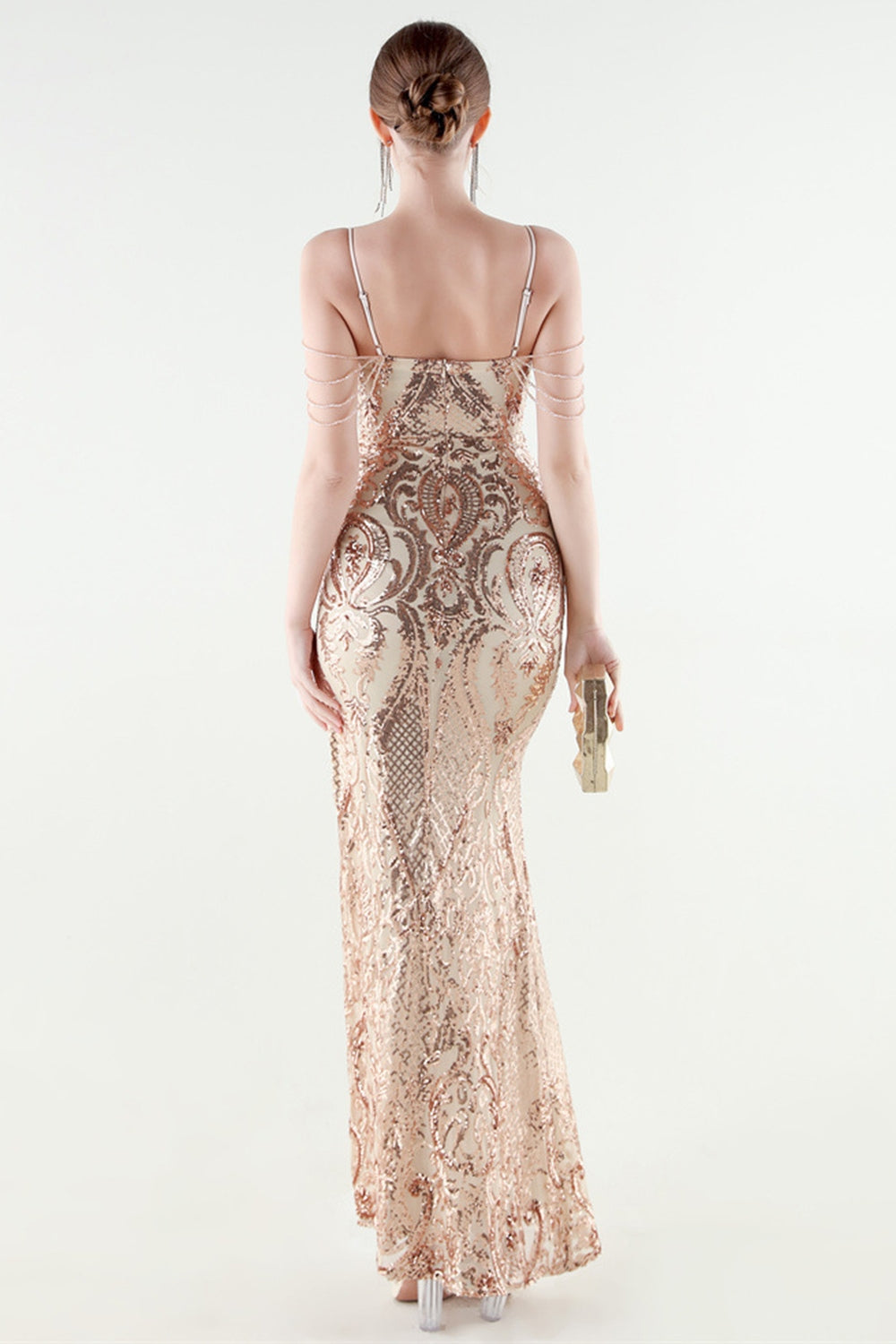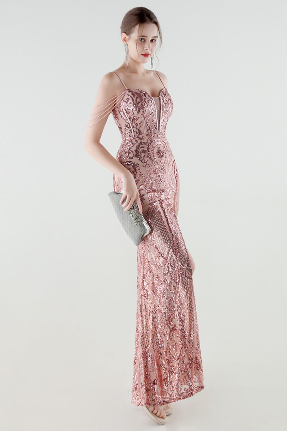 Sparkly Appliques Blush Sheath Cold Shoulder Prom Dress with Slit