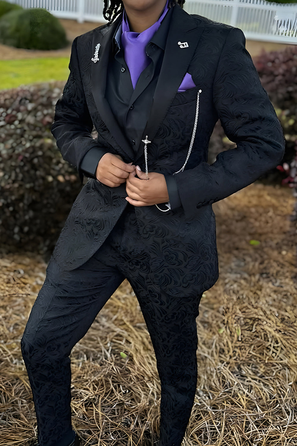 Black Peak Lapel Jacquard 2 Piece Men's Homecoming Suits