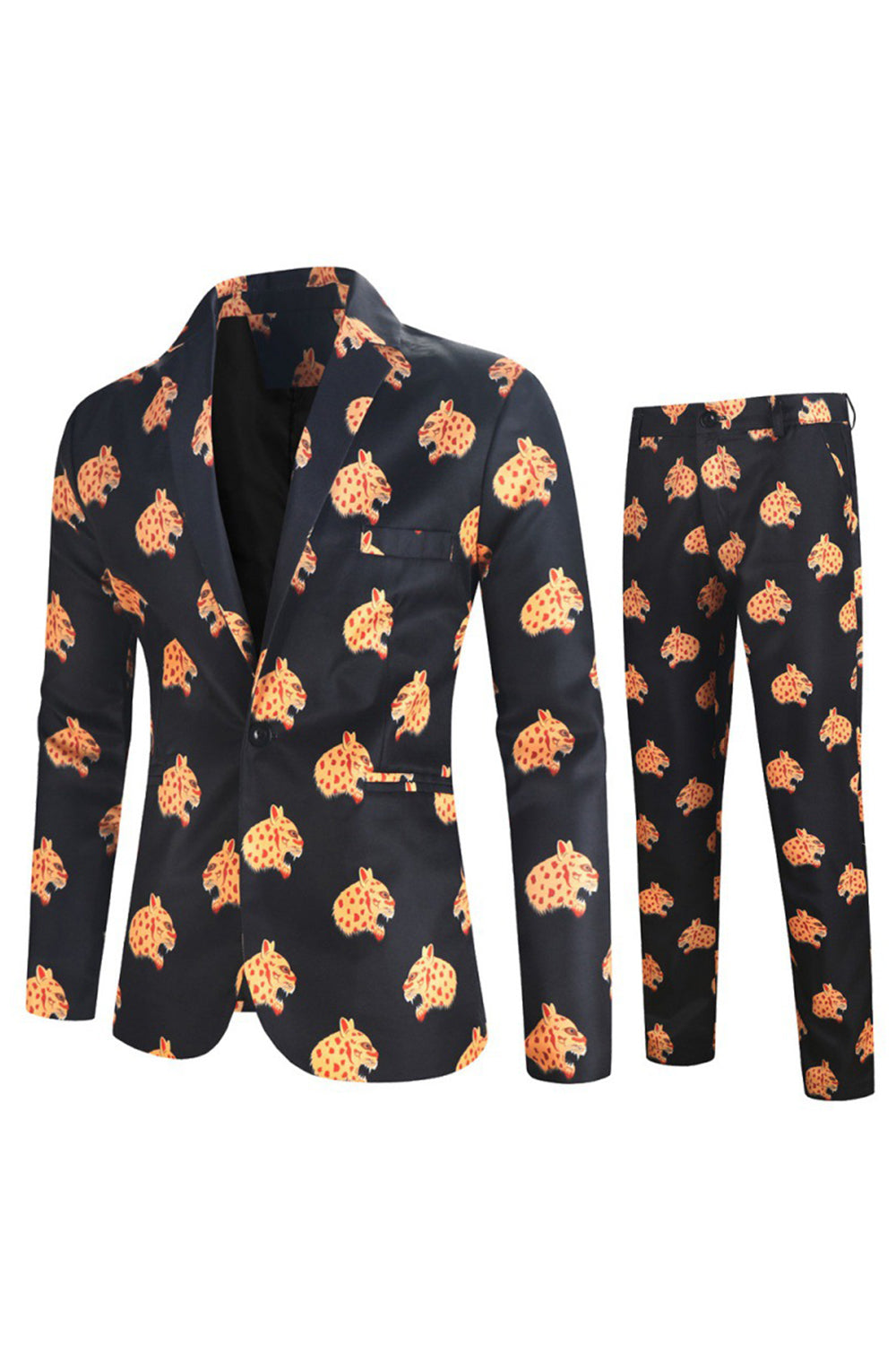 Men's Black Christmas Printed 3-Piece Notched Lapel Suits
