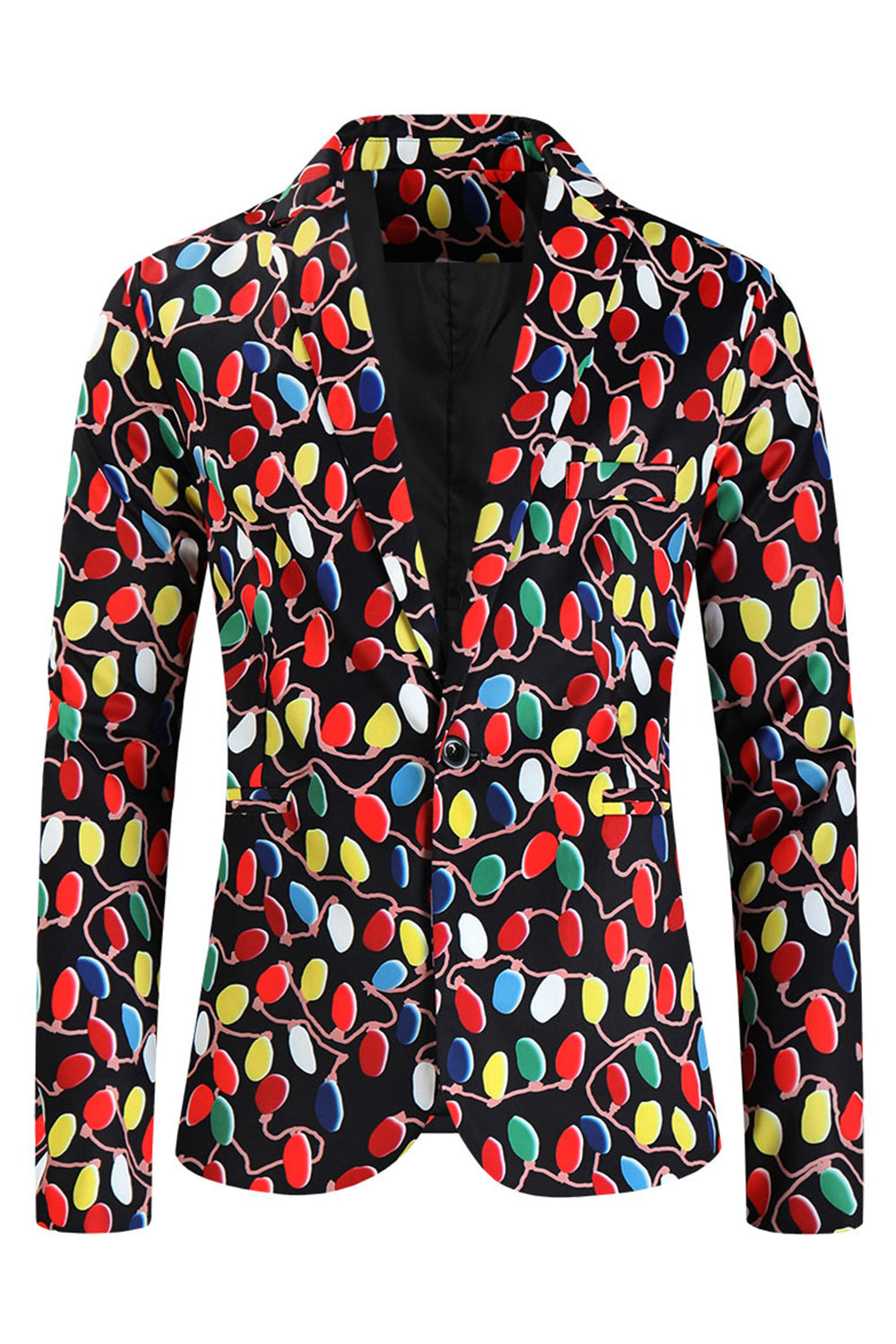 Men's Colorful Christmas Printed Black 3-Piece Party Suits