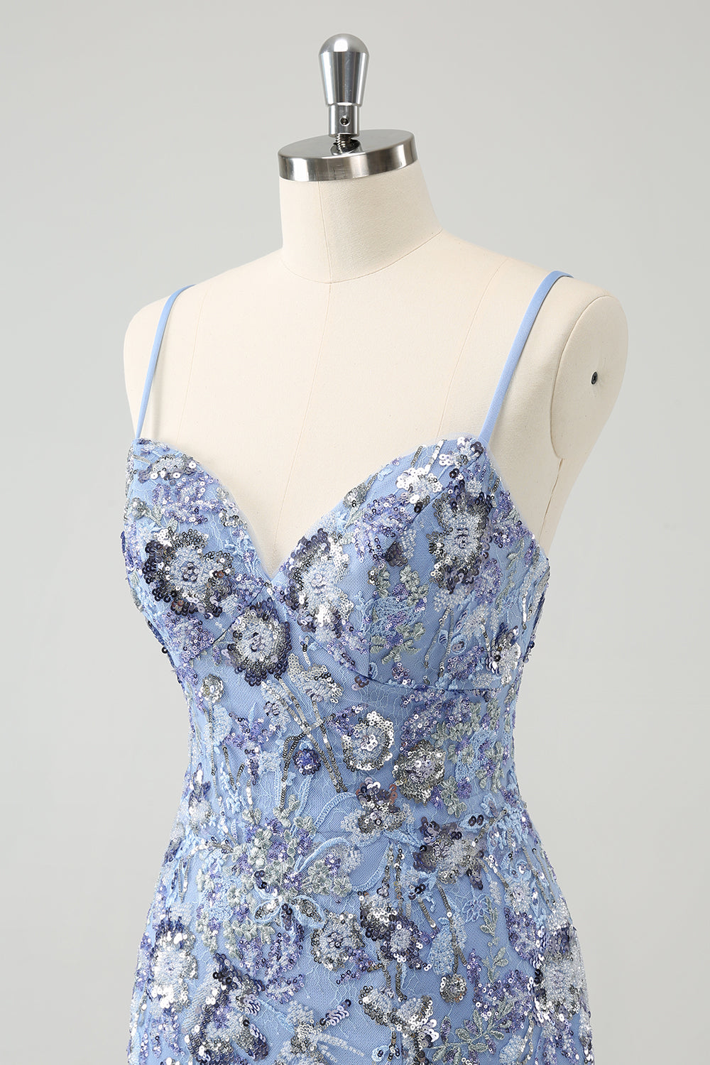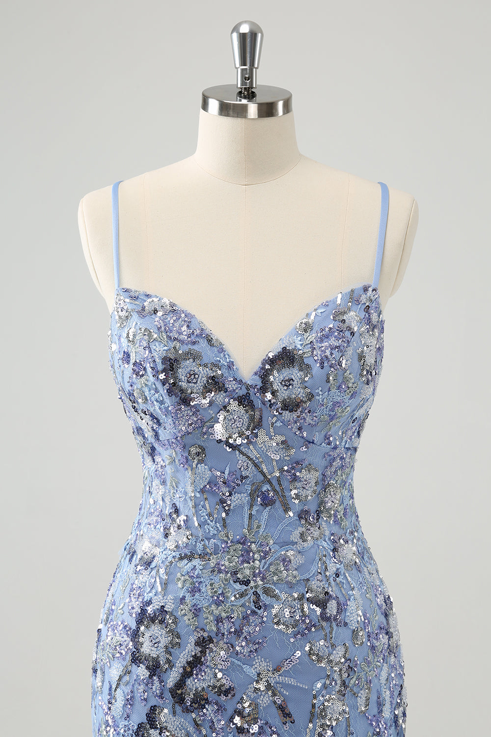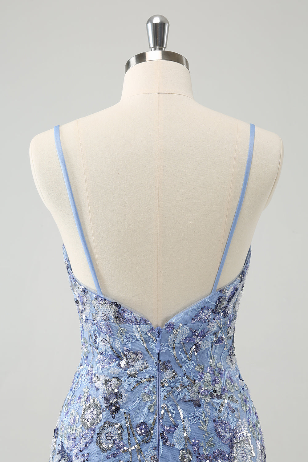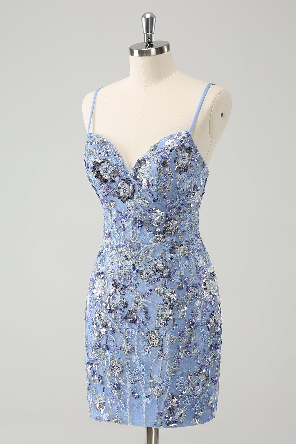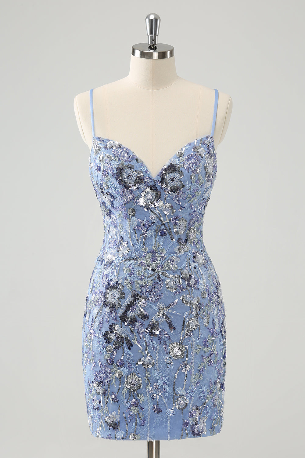 Grey Blue Tight V Neck Homecoming Dress with Sequins