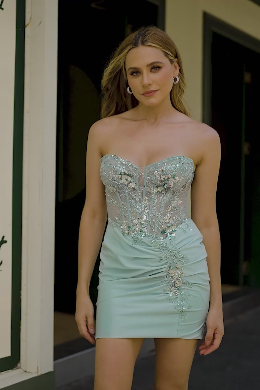 Grey Green Bodycon Corset Homecoming Dress with Sequins