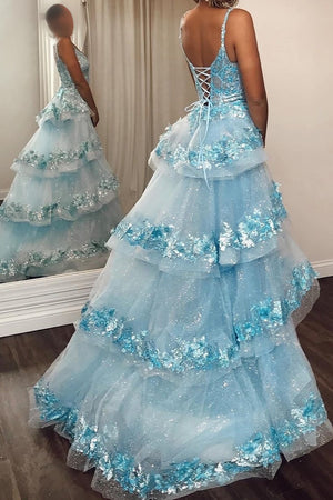 Sparkly Corset Blue Sequins Prom Dress with Slit