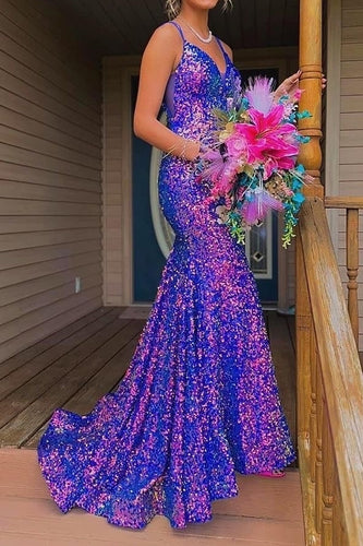 Glitter Purple V-Neck Long Mermaid Sequin Prom Party Dress