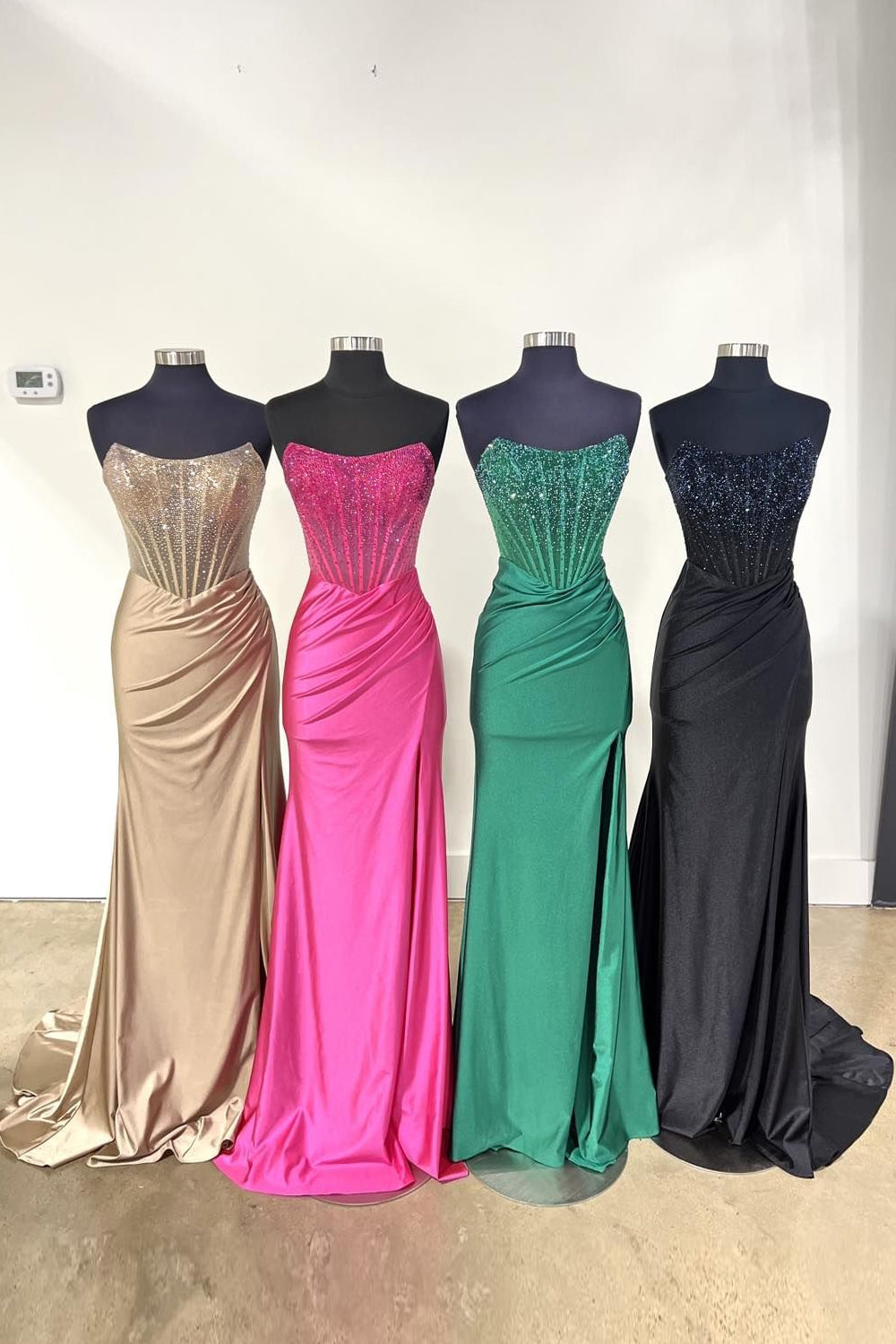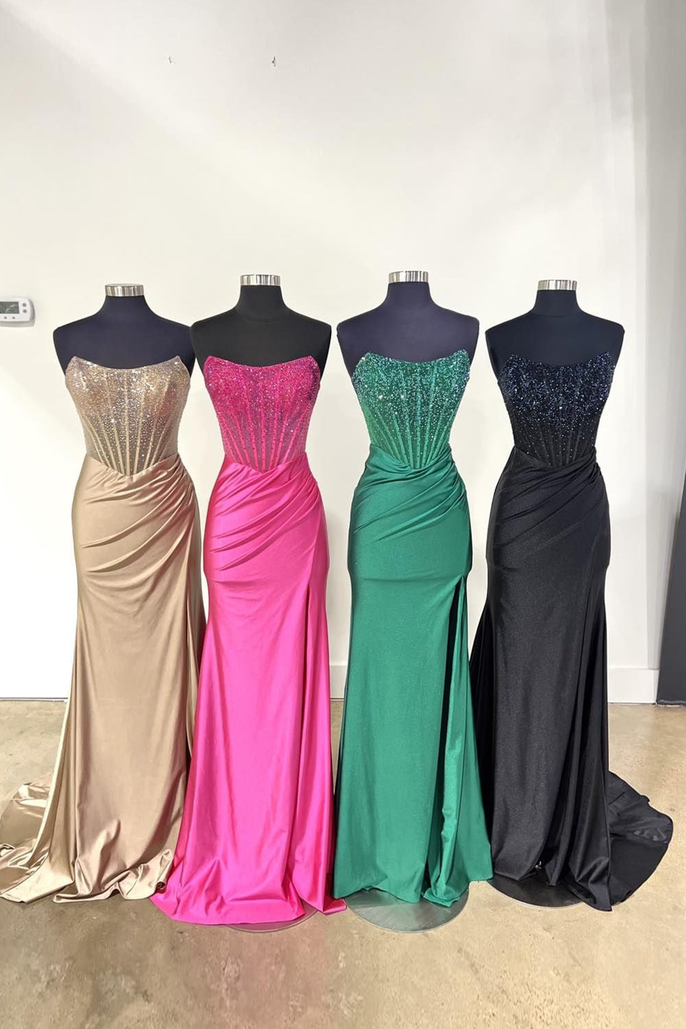 Sparkly Black Beaded Corset Mermaid Strapless Prom Dress
