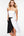One Shoulder Black and White Midi Cocktail Dress with Slit