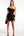 Strapless Black Satin Midi Cocktail Dress with Rhinestones