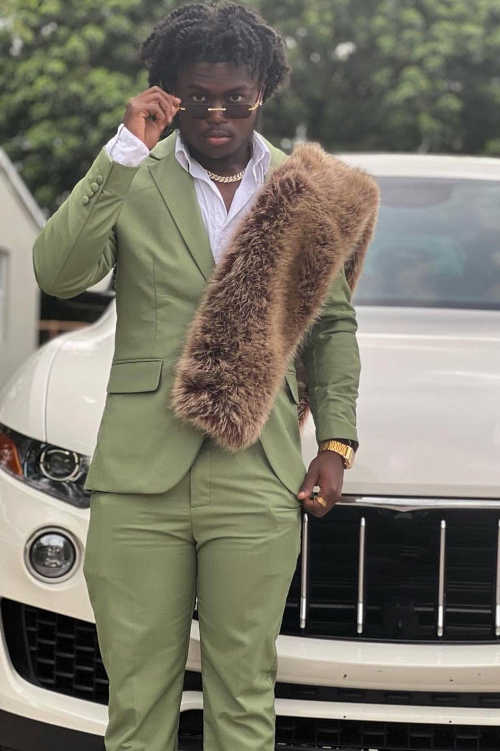 Men's Grey Green 2-Piece Notched Lapel One Button Prom Suits