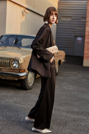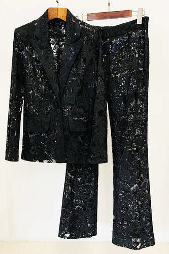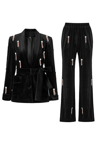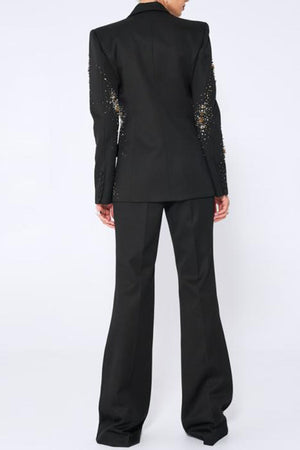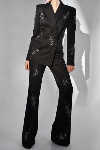 Sparkly Black Beaded 2 Piece Double Breasted Women Suit