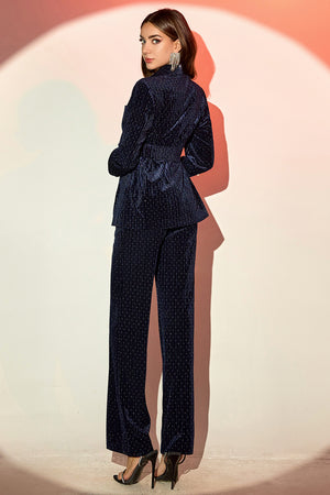 Sparkly Navy 2 Piece Women Formal Suits with Bow