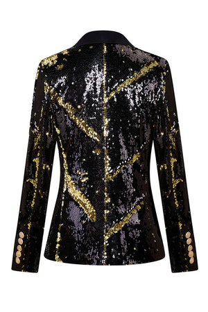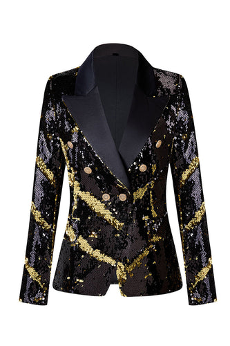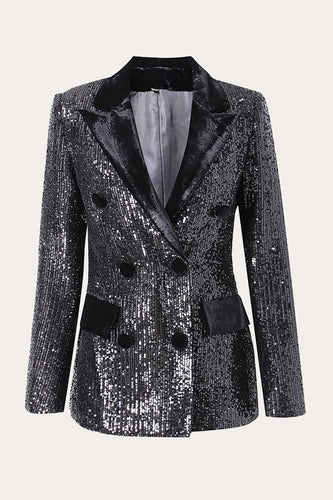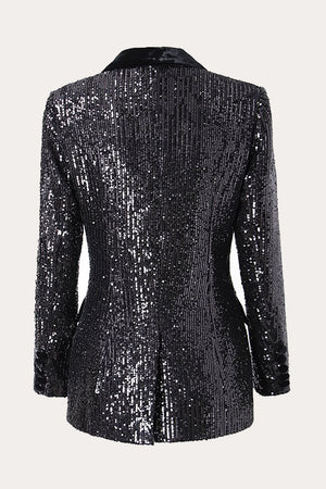 Sparkly Black Sequins Double Breasted Women Prom Blazer