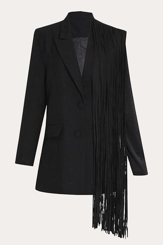Sparkly Black Beaded Notched Lapel Women Prom Blazer