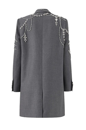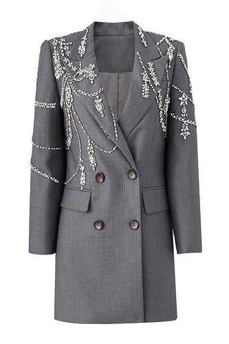 Sparkly Grey Beaded Double Breasted Women Blazer