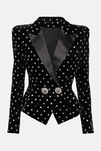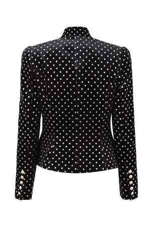 Fashionable Diamond Beaded Double Breasted Slim Women Blazer