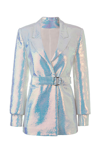 Sparkly Green Sequins Notched Lapel Women Suits with Belt