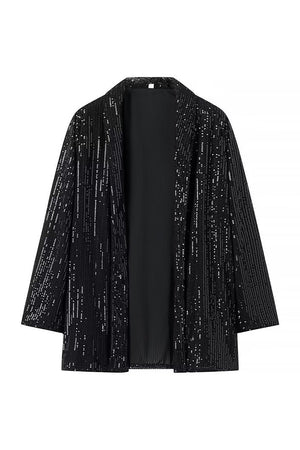 Sparkly Black Sequins Longline Oversized Prom Blazer For Women