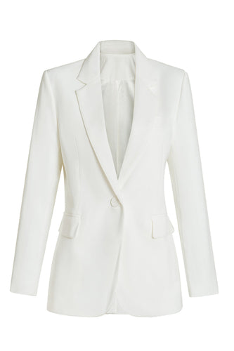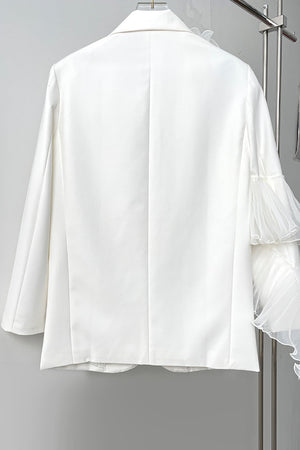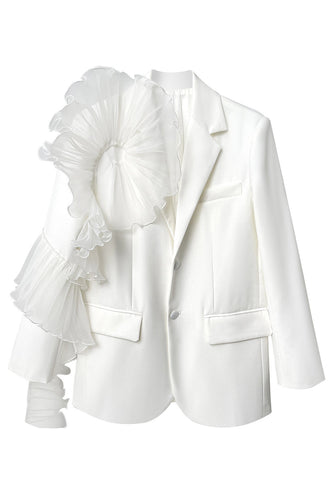 White Notched Lapel Two Buttons Women Party Blazer with Flower