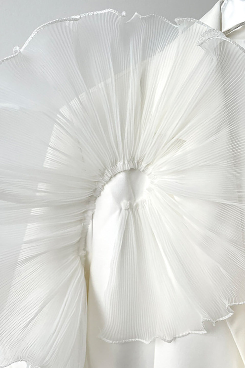 White Notched Lapel Two Buttons Women Party Blazer with Flower