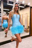 Blue A Line V Neck Strapless Short Homecoming Dress