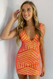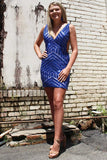 Fuchsia Sequins V-Neck Tight Homecoming Dress